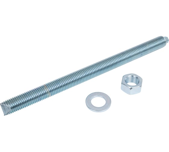 Металлическая шпилька к любым химическим анкерам (капсулы, пластиковые тубы) с шестигранной головкой и двусторонней заточкой конца стержня (угол 45 градусов) с гайкой и шайбой в комплекте.