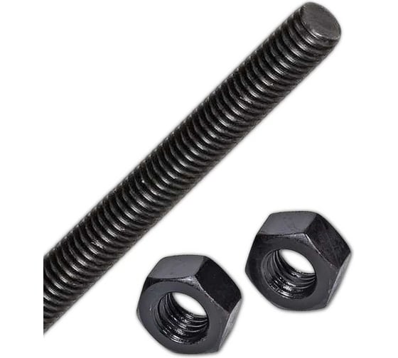 Шпилька резьбовая высокопрочная 12.9 DIN 975 с гайками к.п. 12.9 DIN 934 - крепежное изделие для стяжки и соединения различных деталей или элементов конструкций, либо для крепления чего-либо посредством анкера, гайки и шайбы в бетонное основание. Её высокая твердость и долговечность обусловлена классом прочности изделия 12.9 - что означает способность держать нагрузку до разрыва 120 кг на миллиметр квадратный площади поперечного сечения шпильки. Главным назначением высокопрочных шпилек с полной резьбой является скрепление различных механизмов и конструкций. Основными потребителями данного крепежа являются машиностроение и строительство. Главными особенностями калёных шпилек 12.9 является стойкость к воздействию высоких нагрузок на растяжение и отсутствие реакции при работе в агрессивной среде. Они не теряют прочности в условиях знакопеременных температур и давления. Такие универсальные параметры как хладостойкость, пластичность и вязкость, делают эти изделия незаменимыми при возведении ответственных строительных конструкций. Гайка ГОСТ 5927 изготавливается из стали и имеет шестигранную форму с резьбовым отверстием по центру. Класс точности А обозначает, что для фиксации гайки НЕ требуются расчетные вычисления. Шестигранные гайки имеют широкое распространение и используются во многих сферах для крепления металлических деталей или конструкций. Материал: Сталь.