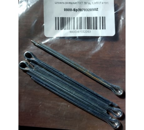Распространенный вид крепежа, который используется вместе со специальными гайками. После установки его концы легко разгибаются в противоположные стороны за счет того, что они имеют разную длину. Шплинты разводные, изготовленные по стандартам ГОСТ 397 могут иметь разные условные диаметры и длину. Данная модель имеет размеры 3,2Х50, оцинкованное покрытие. Может использоваться для крепления корончатых или обычных шестигранных гаек, соответствующего диаметра.