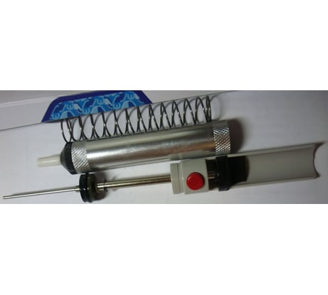 Пока не использовался, описание прошлого опыта работы с различными конструкциями. Приобретался в декабре 2025 за 224 руб. Специально выбирался с цилиндрическим штоком как наиболее долговечный, спасибо остальным за отзывы и фотографии. ИМХО: десолдер является инструментом на всю жизнь. И его повторная покупка маловероятна, если бы не генуборка жены и глубина современных баков для мусора… Смешанные чувства, требует доработки. Лучше за эту стоимость не найти, но с раздельным штоком, двумя уплотнительными кольцами и креплением ручки на лапки без резьбы инструмент был бы чуточку интересней. Особенность: движение штока ограничивается стопорным кольцом, которое ударяется в торец ручки. В целом, нормальный качественно сделанный оловоотсос по низкой стоимости. Однако, для работы в вечернее/ночное время дома из-за шумности не подходит. В гараже, на работе или в лаборатории самое-то. На фотографиях модернизация – силиконовая трубочка на носик (внутренний диаметр 5 мм, стенка 0.5, в два слоя ступенькой чтобы не собиралась гармошкой, лучше стенка 1.0 мм), которая предотвращает износ фторопласта. Сложно сейчас предсказать процесс модернизации, лучше заменить пружину на более мягкую или отпустить по витку с каждой стороны и сжать. Ну и как обычно, вставки из вспененного полимера между поршнем и ручкой, пластиковая трубочка на штырь на кнопке курка и т.д. Даже если заменить пружину, то через 10 тыс. контактов первым должна отказать резьба ручки. Кратковременно помогает изолента, а потом печать новой ручки.