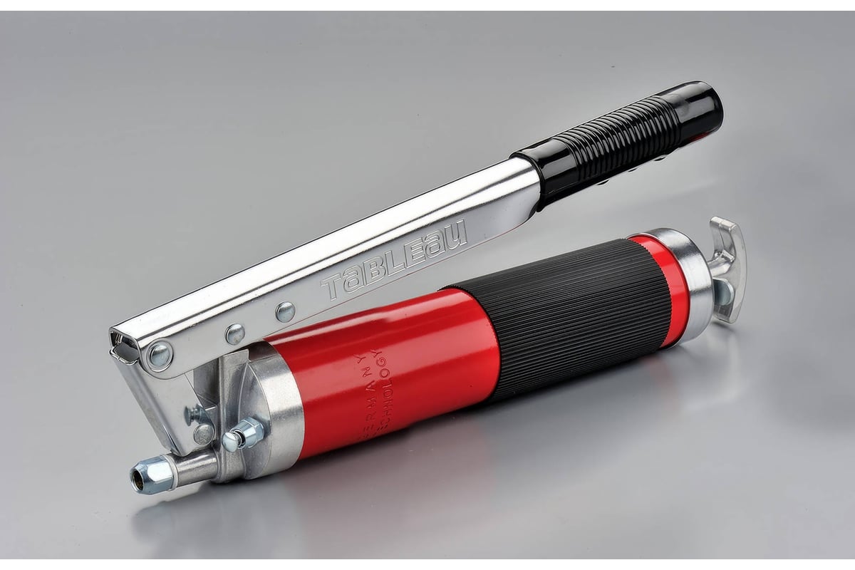 Шприц двухплунжерный AIRLINE ATGG071 предназначен для нагнетания пластичной (консистентной) смазки в различные узлы и агрегаты, подверженные трению. Производится из высокопрочной стали на автоматизированном оборудовании. Применяется для обслуживания легковых автомобилей, грузовых, тракторов, спецтехники, промышленного оборудования и станков. Изделие имеет возможность заправки тремя способами: с помощью картриджа (туба со смазкой 400гр), ручным способом (шпателем/из емкости) и нагнетателем смазки через специальный клапан. Два плунжера обеспечивают повышенную производительность при работе. На головке шприца имеется специальный высокоэффективный клапан винтового типа для удаления воздуха. Шприц комплектуется резиновым износостойким шлангом 300мм, усиленной стальной трубкой 150мм, а также четырехлепестковым и коническим наконечником. Данная модель оснащена резиновой рукоятью для повышения удобства эксплуатации и нескользящей резиновой накладкой, которая способствует улучшенному сцеплению с цилиндрическим корпусом шприца при работе.