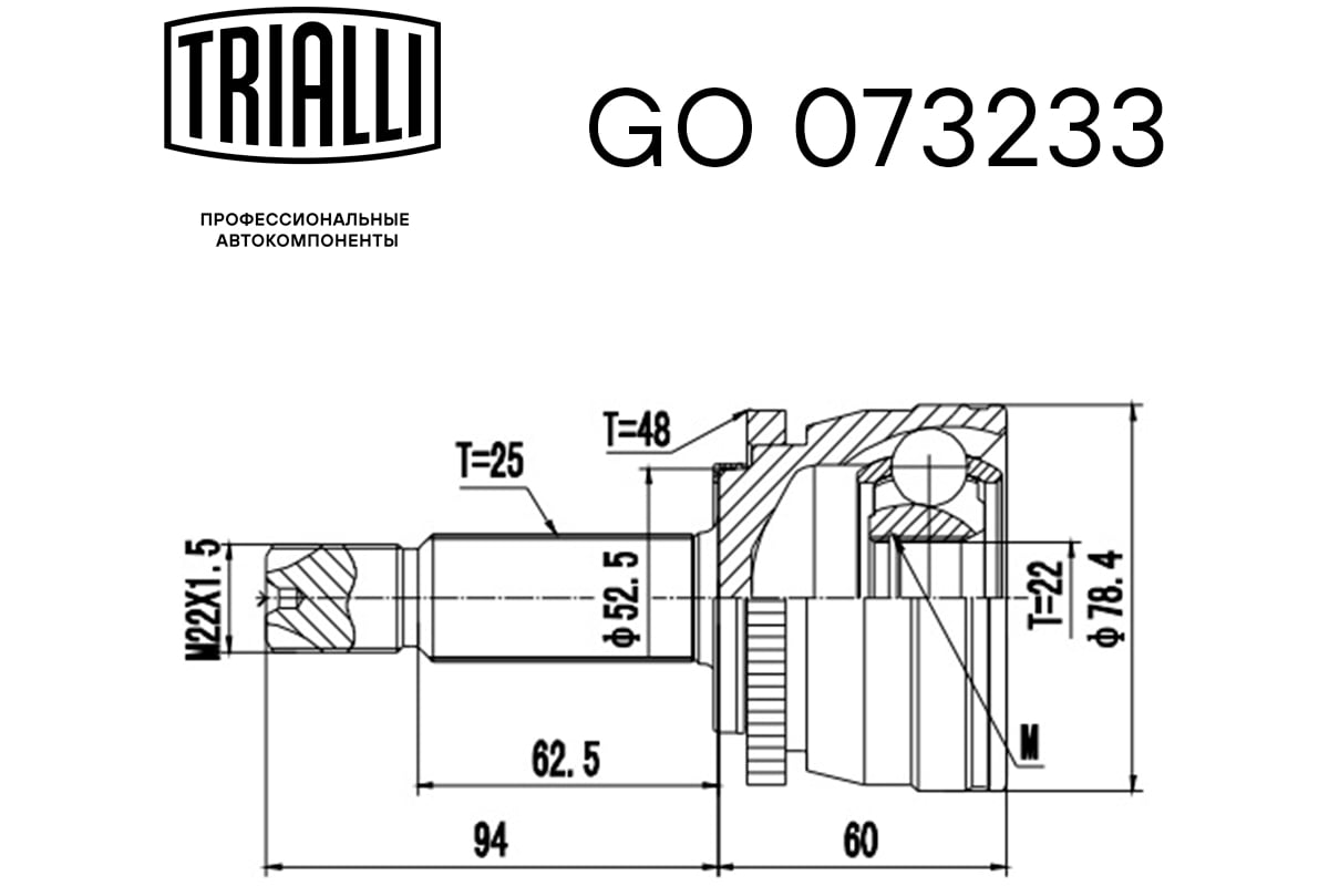 ШРУС наружный для автомобилей Kia Rio II 1.4i/1.6i DOHC AT ABS TRIALLI GO 073233