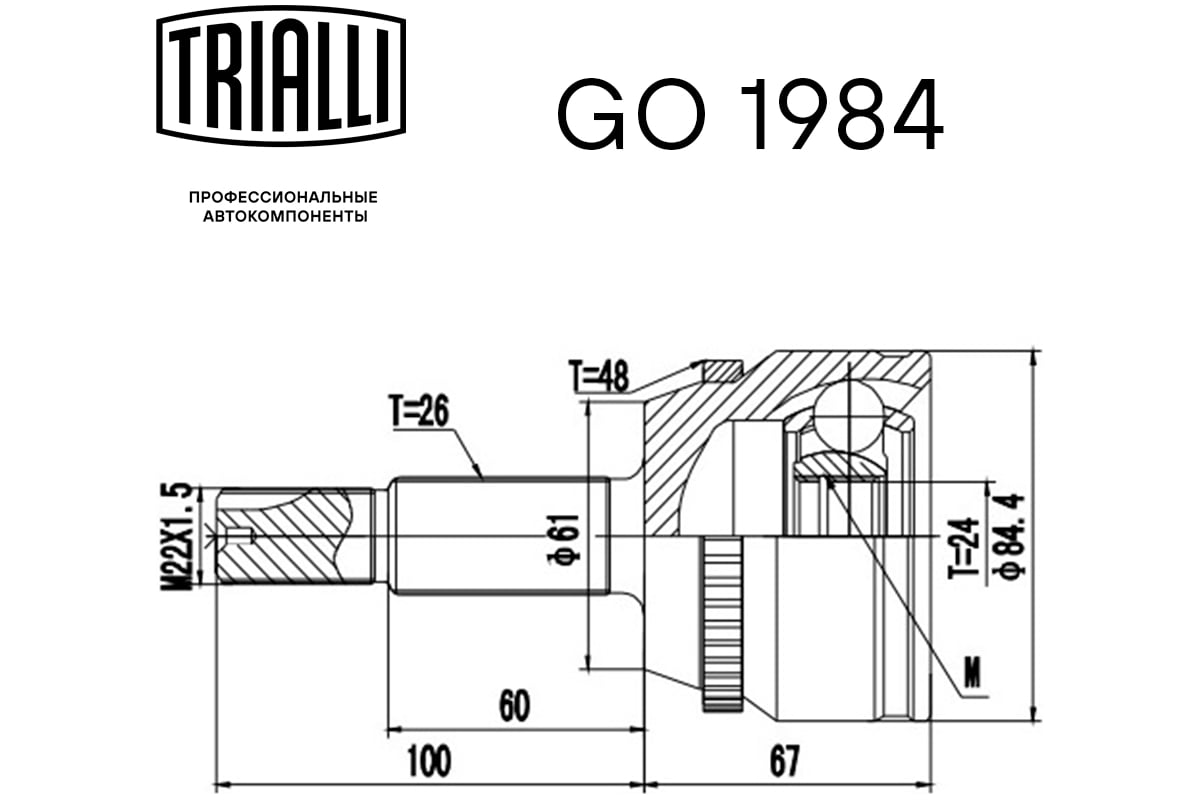 ШРУС наружный передний для автомобилей Toyota Highlander 3.5i TRIALLI GO 1984