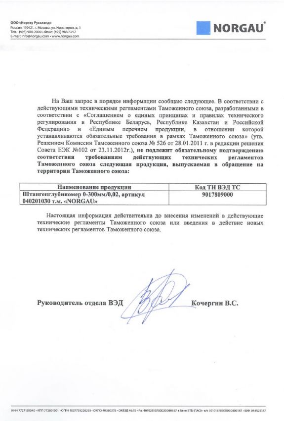 Технические характеристики штангенглубиномера NORGAU 040201030