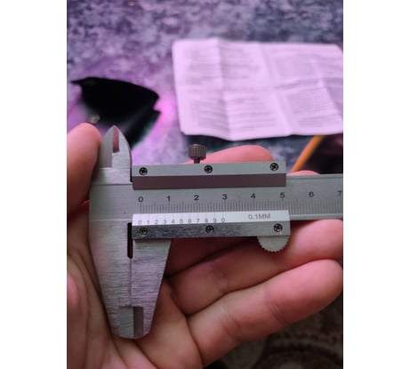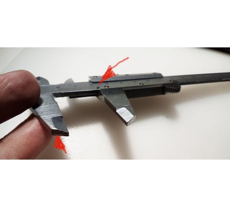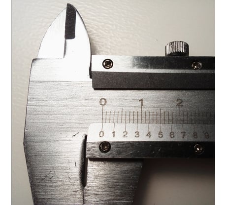 Это изделие чем-то по внешнему виду напоминает штангенциркуль, но таковым не является. В основных губках угловой зазор. Губки для внутреннего диаметра заходят друг на друга, заточены не в 0.