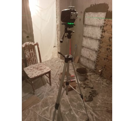 Хороший штатив.Все винты закруч. в металл.втулки или гайки.Устойчивый,не хлипкий.Из минусов - отсутствие резьбы под крепление головы.Там на выдвижной штанге просто пласт.втулка в которую ставится голова и фиксир-ся винтом сбоку.Также,при подъеме выдвижной штанги,огромный люфт(пока не закручен фикс-щий винт).Из-за этого нужно 2-4 регулировки,чтобы попасть лазерным уровнем в нужные точки.Также нет пузырьковых уровней на самой голове.Очень неудобно ловить горизонталь.