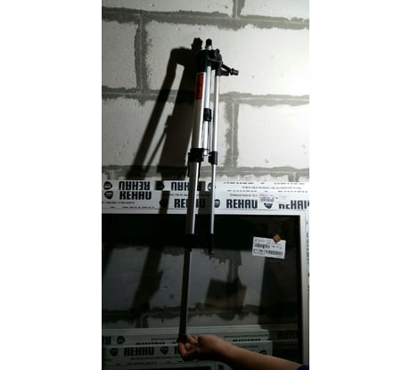 Мне понравился штатив и к невелиру Elitech ЛН 5/4В подошел идеально. Работать стало намного проще и легче. Теперь Не нужно искать где бы и на какую высоту поставить.( в пределах 1,5 м ). Плавно штоком можно выровнять линию лазера на нужную отметку. Стоит уверенно на полу и даже если поверхность не ровная,можно корректировать уровень штатива,отдельно каждой ножкой.