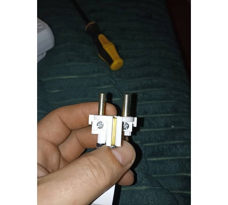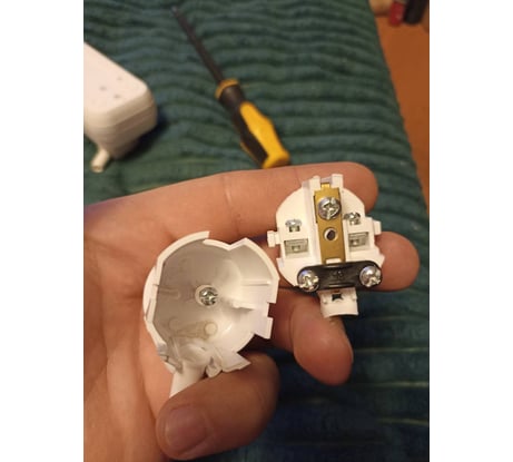 Первый раз вижу вилку, у которой гайки на контактах затягиваются через пластик. То есть, либо затяни нормально и пластик треснет, либо затяни плохо и думай, когда она сгорит. На торшер какой или еще что-то минимальной мощности сойдет.