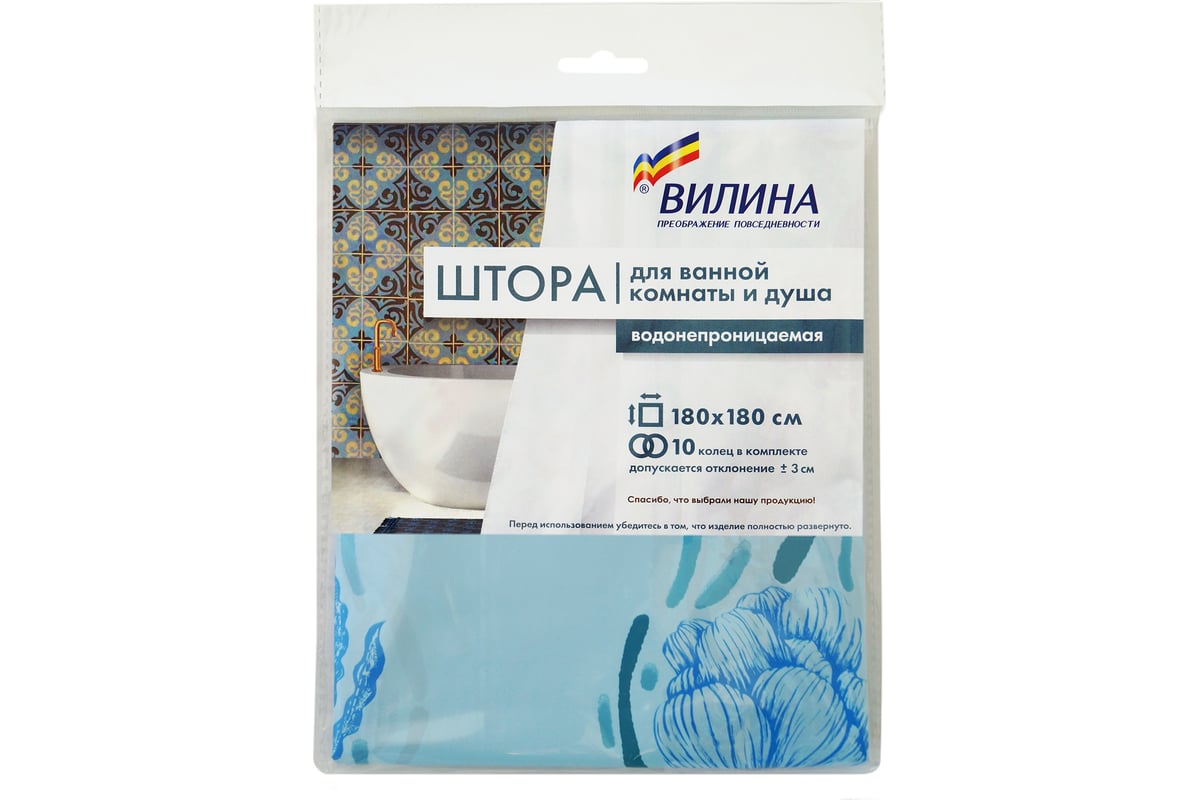 Сопутствующие товары для шторы VILINA Ракушки полиэтилен, 180х180 см, голубые