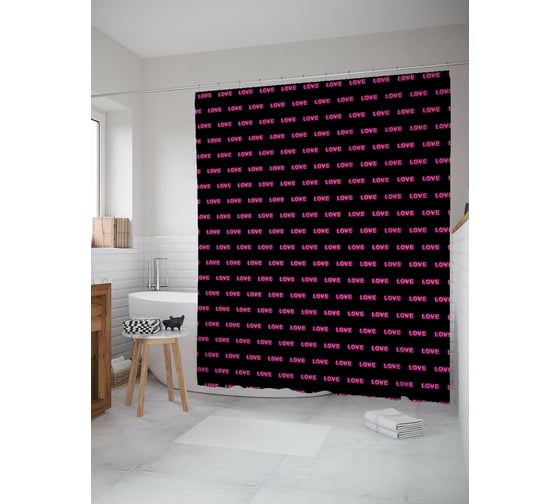 Штора для ванной JOYARTY "love" из сатена, 180x200 см с крючками sc_422665 выполнена из 100% полиэстера и обработана водоотталкивающей пропиткой, благодаря чему защищает пол от брызг и влаги.