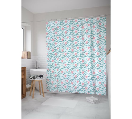 Штора для ванной JOYARTY "Поле сердец" из сатена, 180x200 см с крючками sc_422722