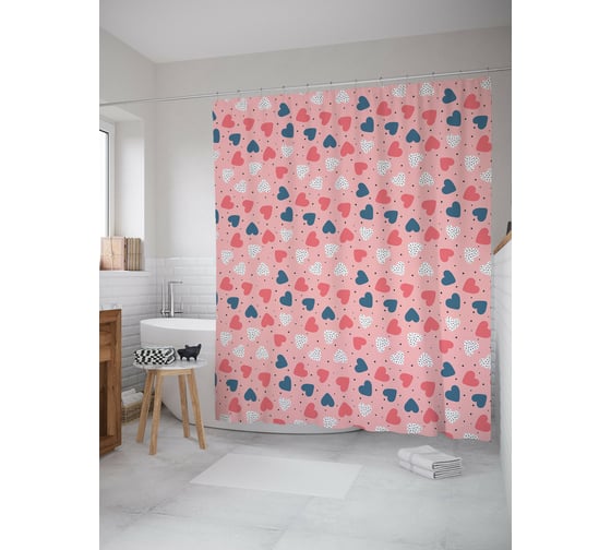 Штора для ванной JOYARTY "Путь сердца" из сатена, 180x200 см с крючками sc_422624 выполнена из 100% полиэстера и обработана водоотталкивающей пропиткой, благодаря чему защищает пол от брызг и влаги.