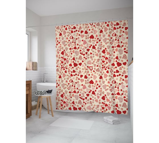 Штора для ванной JOYARTY "Разнообразные сердечки" из сатена, 180x200 см с крючками sc_422626