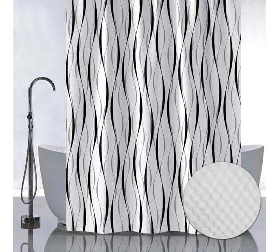 Штора Санакс с рельефным теснением, принт ленты на белом фоне, в ванную комнату, без колец, полиэстер/микрофибра, 180х180 см 05-07