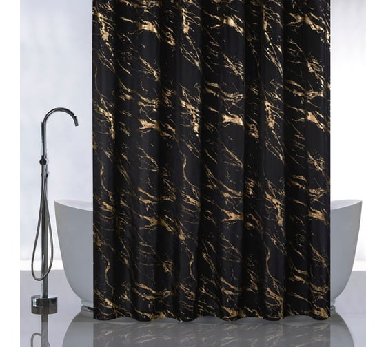 Штора САНАКС с рисунком чёрный мрамор с золотом, в ванную комнату, без колец - полиэстэр 01-108