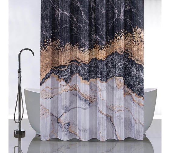 Штора САНАКС с рисунком чёрный мрамор, в ванную комнату, без колец - полиэстэр 01-81
