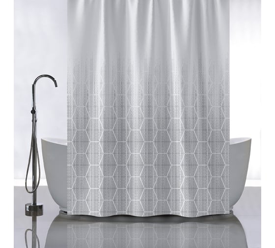 Штора САНАКС с рисунком фигуры на сером фоне, в ванную комнату, без колец - полиэстэр, 180 х 180 см 01-119