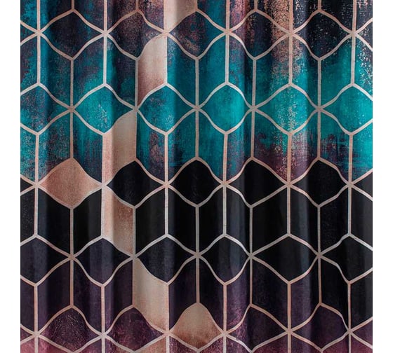 Штора Санакс с рисунком коричневые кубы, в ванную комнату, без колец, полиэстэр 01-90
