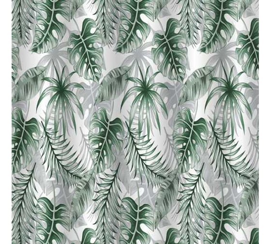 Штора САНАКС с рисунком, монстера, в ванную комнату, без колец, полиэстэр 01-52