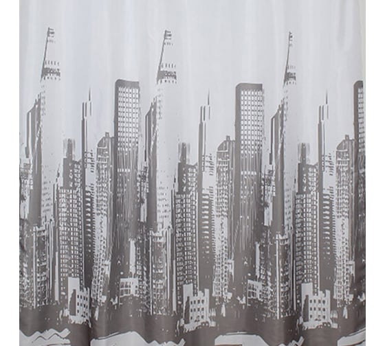 Штора САНАКС с рисунком, небоскрёбы, в ванную комнату, без колец, полиэстэр 01-13