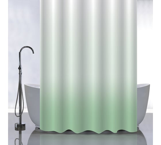 Штора САНАКС с рисунком, переход - салатовый, в ванную комнату, без колец, полиэстер 180 х180 см 01-105