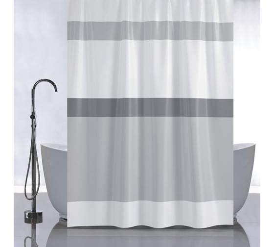 Штора САНАКС с рисунком, полосы горизонтальные, в ванную комнату, без колец, полиэстер 180 х180 см. 01-98
