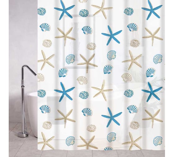 Штора САНАКС с рисунком, ракушки, матовая, в ванную комнату, с кольцами, peva, 180 х 180 см 06-08