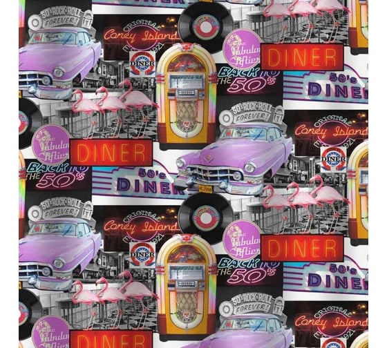 Штора САНАКС с рисунком, рок- н - ролл, в ванную комнату, без колец, полиэстер 01-38