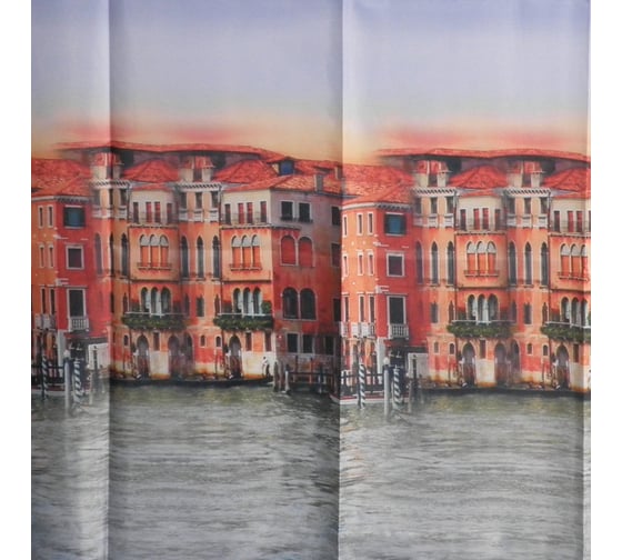 Штора САНАКС с рисунком, венеция, в ванную комнату, без колец, полиэстэр 01-45