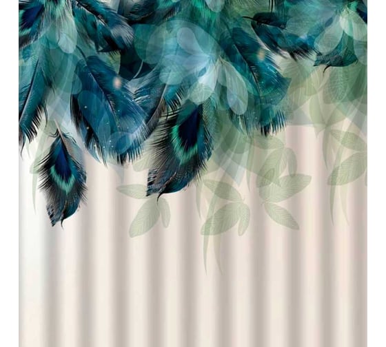Штора Санакс с рисунком зелёные перья, в ванную комнату, без колец, полиэстэр 01-85
