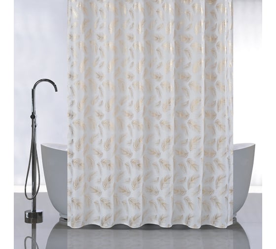 Штора САНАКС с рисунком, золотые перья на белом, в ванную комнату, без колец - полиэстэр, 180 х 180 см 01-106