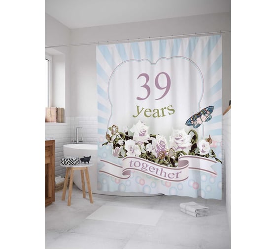 Штора (занавеска) для ванной JoyArty "39 годоа вместе" из сатена, 180х200 см с крючками, sc_7764