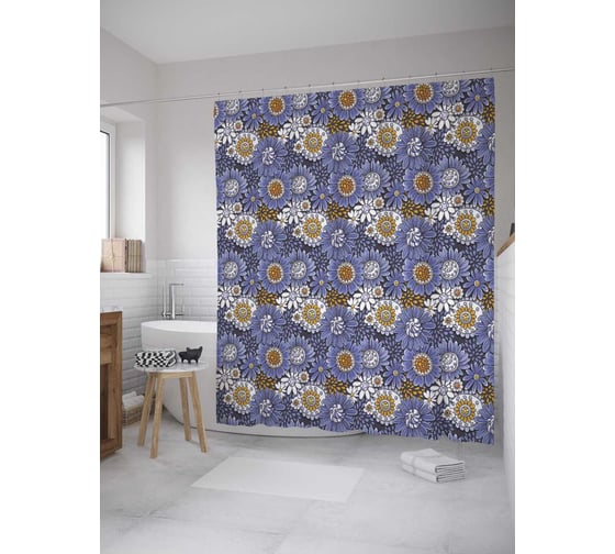 Штора (занавеска) для ванной JoyArty "Абстрактное поле цветов" из сатена, 180х200 см с крючками, sc_32522