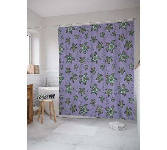 Штора (занавеска) для ванной JoyArty "Абстрактные черепахи" из сатена, 180х200 см с крючками, sc_58611