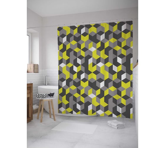 Штора (занавеска) для ванной JoyArty "Абстрактные кубы" из сатена, 180х200 см с крючками, sc_34689