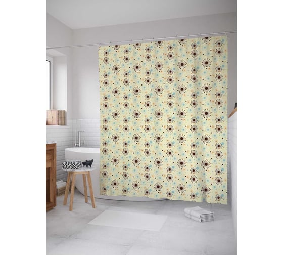 Штора (занавеска) для ванной JoyArty "Абстрактные одуванчики" из сатена, 180х200 см с крючками, sc_29608