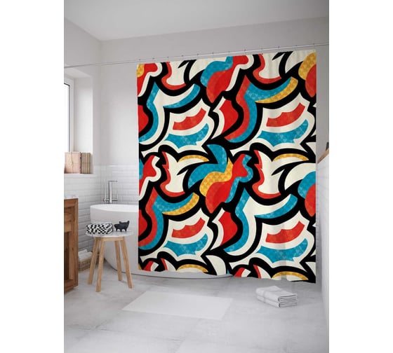 Сопутствующие товары для шторки-занавески JOYARTY Абстрактные узоры из сатена, 180х200 см с крючками
