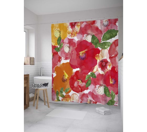 Штора (занавеска) для ванной JoyArty "Абстракция цветочной композиции" из сатена, 180х200 см с крючками, sc_28180