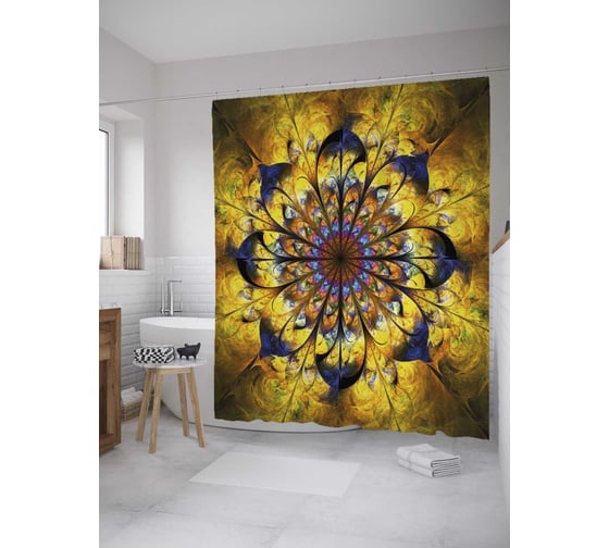 Штора (занавеска) для ванной JoyArty "Африканская мандала" из сатена, 180х200 см с крючками, sc_34729