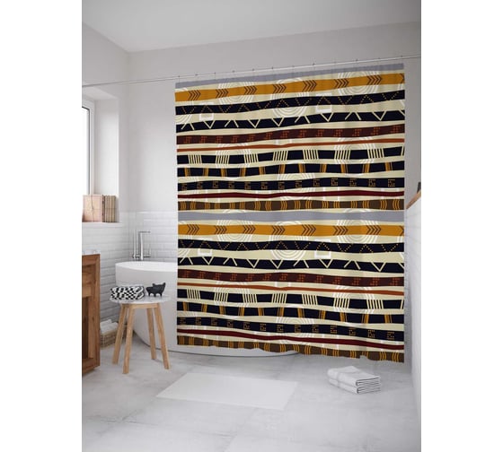 Штора (занавеска) для ванной JoyArty "Африканские мотивы" из сатена, 180х200 см с крючками, sc_36645