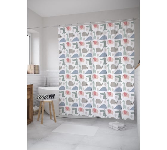Штора (занавеска) для ванной JoyArty "Африканское сафари" из сатена, 180х200 см с крючками, sc_61530