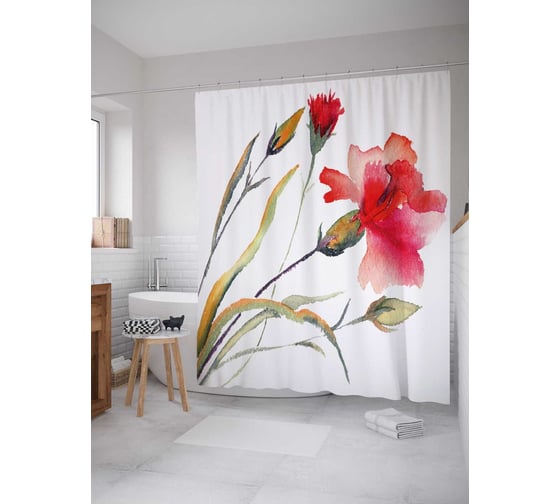 Сопутствующие товары для шторки-занавески JOYARTY Акварельные гвоздики из сатена, 180х200 см с крючками