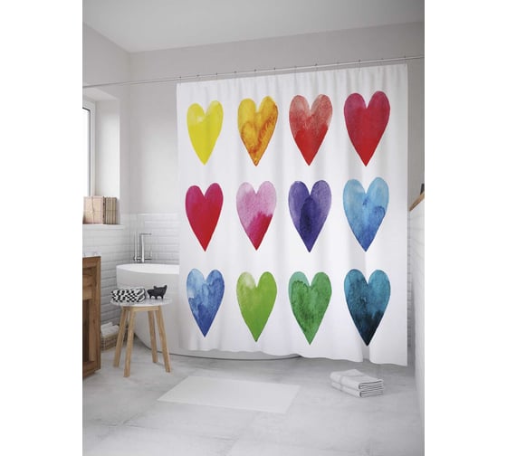 Сопутствующие товары для шторки-занавески JOYARTY Акварельные сердца из сатена, 180х200 см с крючками