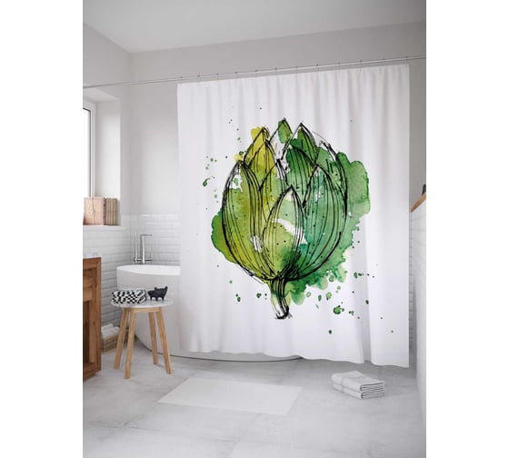 Штора (занавеска) для ванной JoyArty "Акварельный артишок" из сатена, 180х200 см с крючками, sc_38897