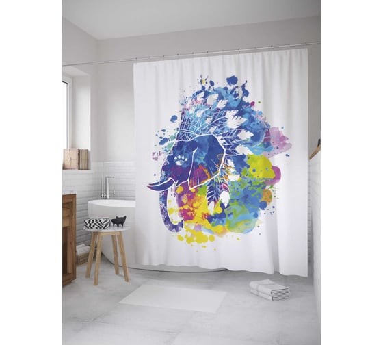 Штора (занавеска) для ванной JoyArty "Акварельный слон" из сатена, 180х200 см с крючками, sc_35404