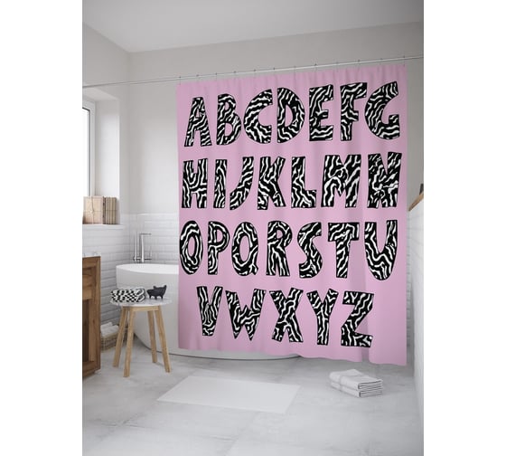 Сопутствующие товары для шторки-занавески JOYARTY Алфавит с рисунком кожи зебры из сатена, 180х200 см с крючками