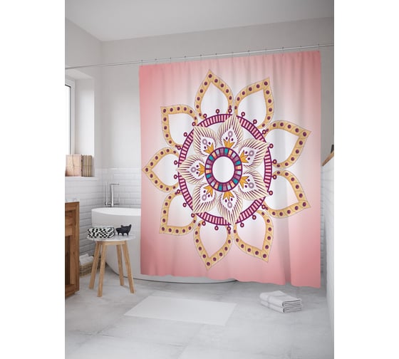 Штора (занавеска) для ванной JoyArty "Алмазная мандала" из сатена, 180х200 см с крючками, sc_62884