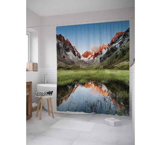 Штора (занавеска) для ванной JoyArty "Альпийское озеро" из сатена, 180х200 см с крючками, sc_10281
