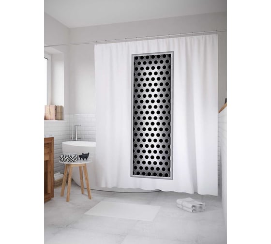 Штора (занавеска) для ванной JoyArty "Алюминиевая i" из сатена, 180х200 см с крючками, sc_4526i