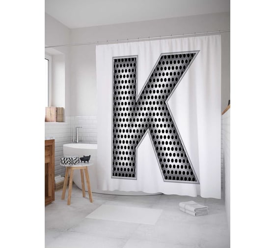 Штора (занавеска) для ванной JoyArty "Алюминиевая k" из сатена, 180х200 см с крючками, sc_4526K